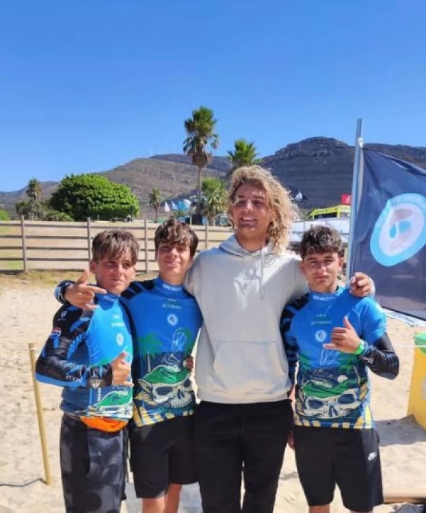Mezo, Argudo y Renedo junto a Lorenzo Casati, campeón del mundo Big Air. Foto: Kitesurf La LotetaAragón está presente durante esta semana en el Campeonato del Mundo Juvenil de kitesurf, que se celebra en las playas de Tarifa (Cádiz), gracias a la participación de tres jóvenes vinculados a la Federación Aragonesa de Vela (FAV) y al Club Kitesurf La Loteta. Se trata de Oskar Argudo (14 años), natural de Sobradiel (Zaragoza); Endika Mezo (14 años), de Torla (Huesca); y Hugo Renedo (15 años), residente en Albelda de Iregua (La Rioja) pero que se entrena habitualmente en el embalse de La Loteta. Los tres lograron su clasificación para el GKA Youth Kiteworld Championship, en su modalidad freestyle U16, tras participar la pasada semana en el Pro Junior Kite Academy, también celebrado en Tarifa, que otorgaba las plazas para esta cita internacional.